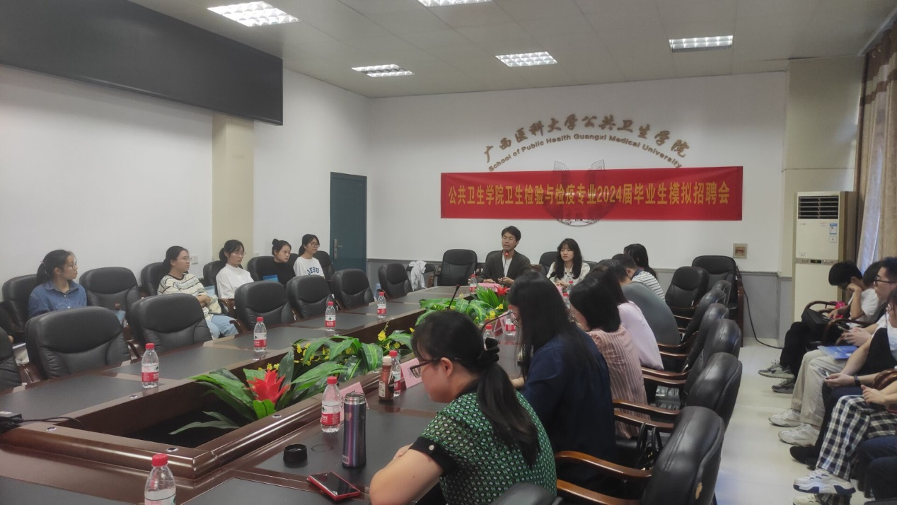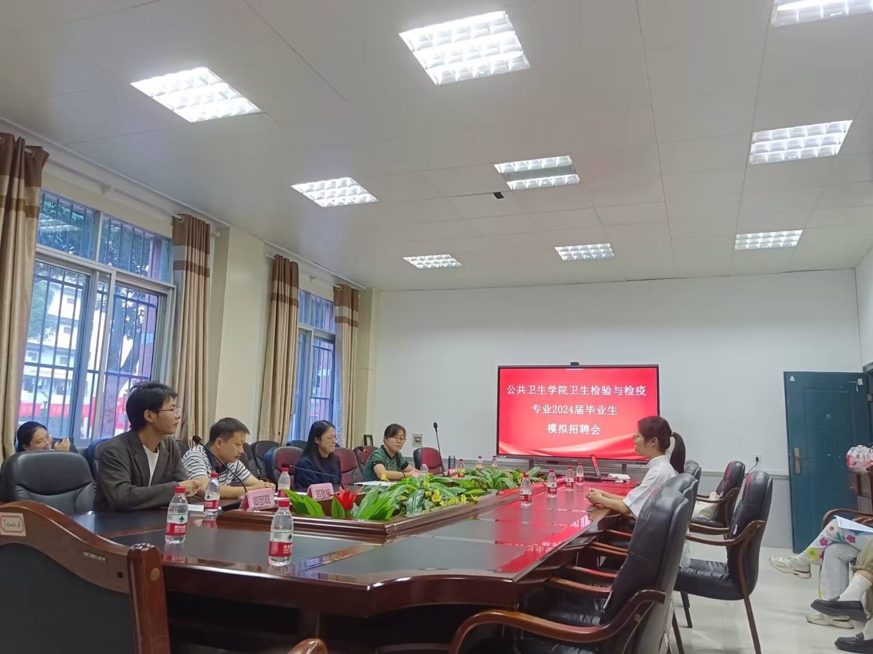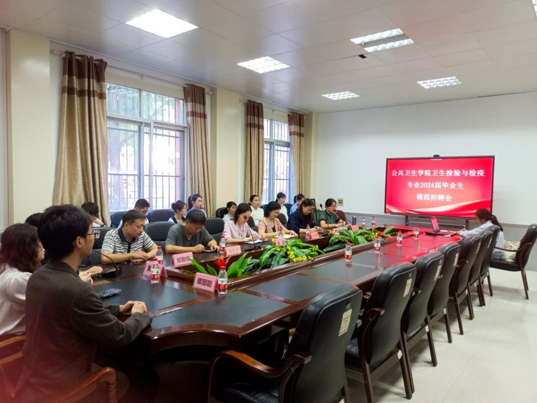 为助推2024届毕业生就业工作,我院于2023年11月11日下午在公共卫生学院109馆会议室召开2024届卫生检验与检疫专业毕业生模拟招聘会。学院党委副书记唐凤、卫生检验与检疫系主任黄东萍、学生办主任汤丰宁、团委书记陈茜、学系教师、辅导员、班主任及2024届卫生检验与检疫专业毕业生参加。