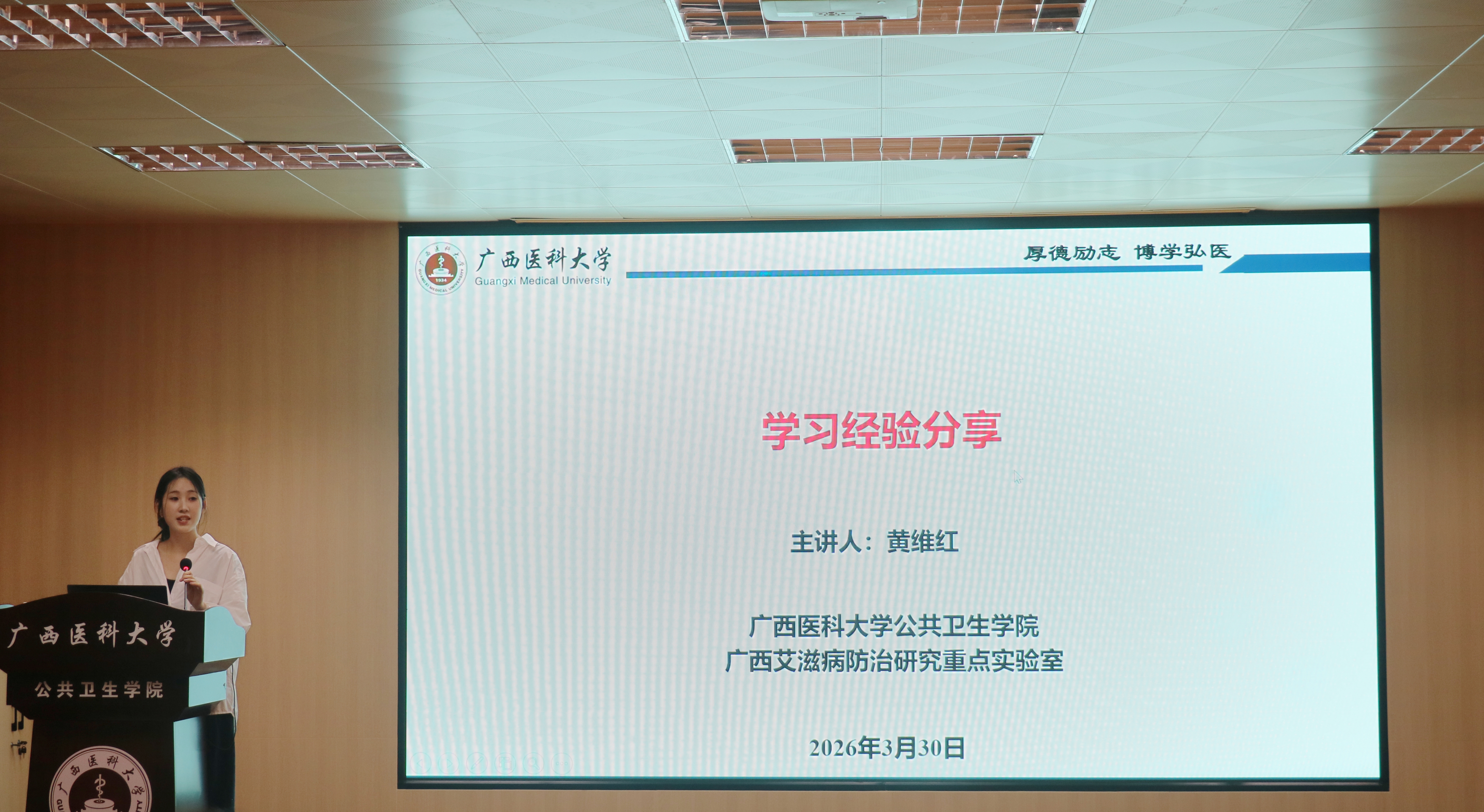 当前位置:学生工作为切实提升研究生科研素养与学习能力,搭建研究生学术交流与经验共享的优质平台,3月30日下午,“叶馥荪”研究生学术论坛第十期在105馆报告厅顺利举办。本次论坛以学习经验分享为主题,邀请学院2025年研究生国家奖学金获得者、2024级流行病与卫生统计学硕士研究生黄维红同学作为主讲嘉宾,为同学们分享科研学习干货。