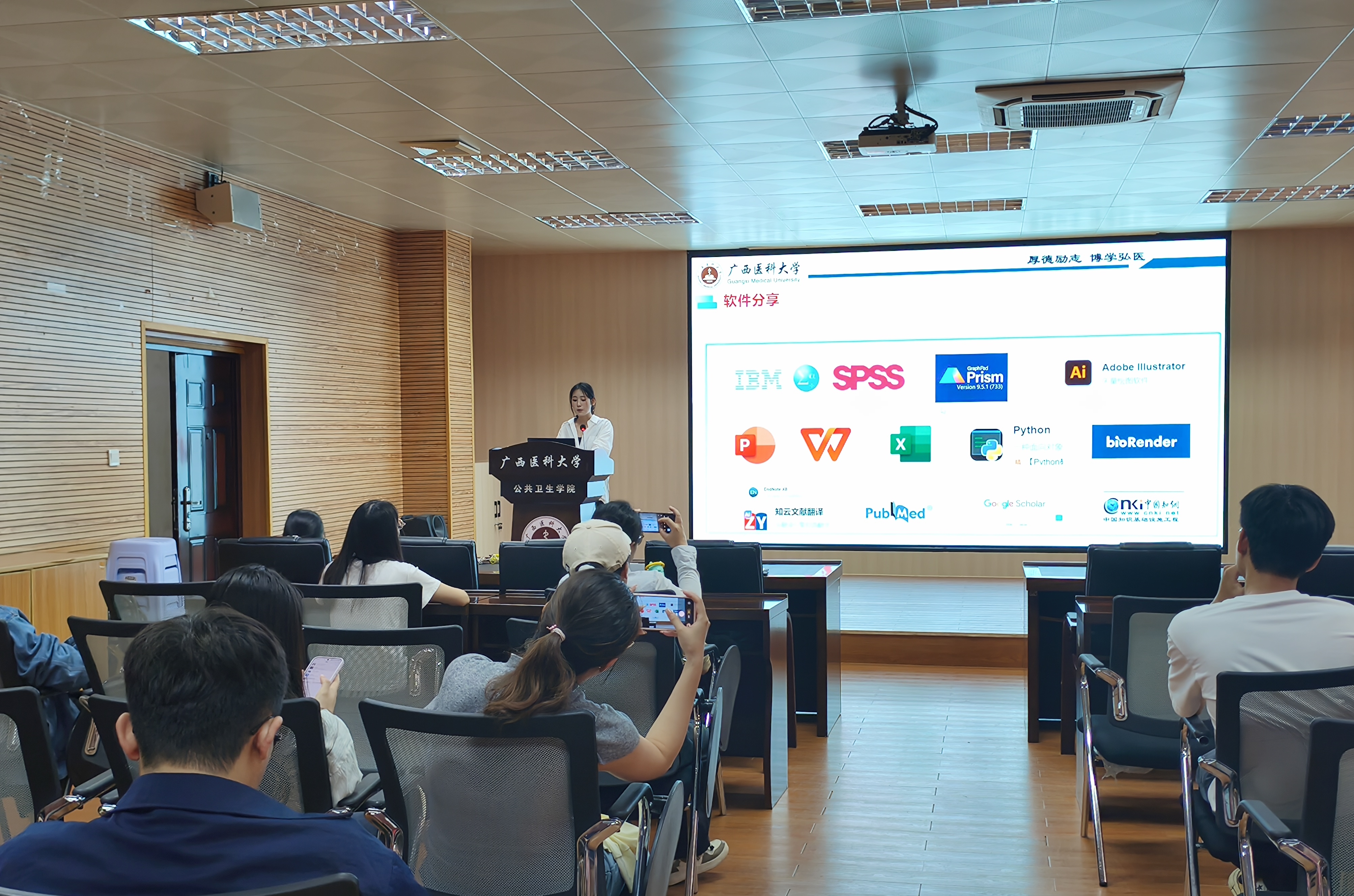 在经验分享环节,黄维红结合自身科研和学习经历,围绕“如何平衡课程学习与科研实践”“科研选题与方向深耕”“论文写作与投稿技巧”三大核心模块展开详细讲解。针对同学们普遍关注的科研入门难题,她结合自身研究方向,分享了如何将机器学习、人工智能等技术与公共卫生研究深度融合的实践经验,为同学们拓宽了科研视野。她鼓励同学们勇于尝试、敢于创新,在实践中积累经验、提升能力。
