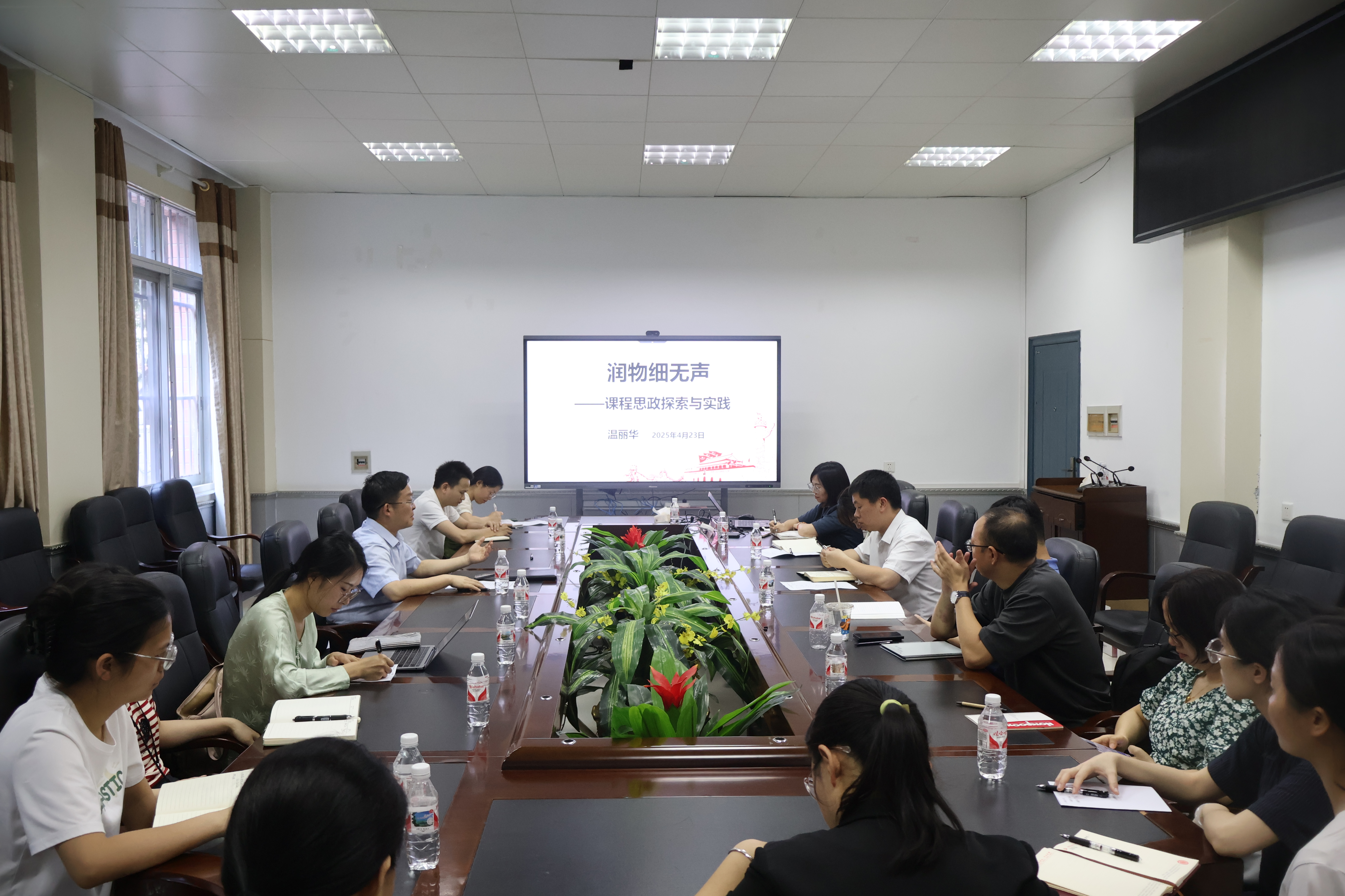 研讨会上,马克思主义学院温丽华副教授以“润物细无声——课程思政探索与实践”为主题开展专题授课。她凭借其丰富的教学经验和深厚的学术造诣,结合丰富的教学案例,从课程思政重要意义、内涵本质、实施路径以及效果评估四个维度,系统讲解如何在教学过程中加深育人的“底色”、找到自己的“角色”和干出专业的“特色”,为参会教师提供了兼具理论深度与实践指导意义的教学思路。交流讨论环节,参会教师围绕“党建与教育教学深度融合”等议题展开交流讨论。
