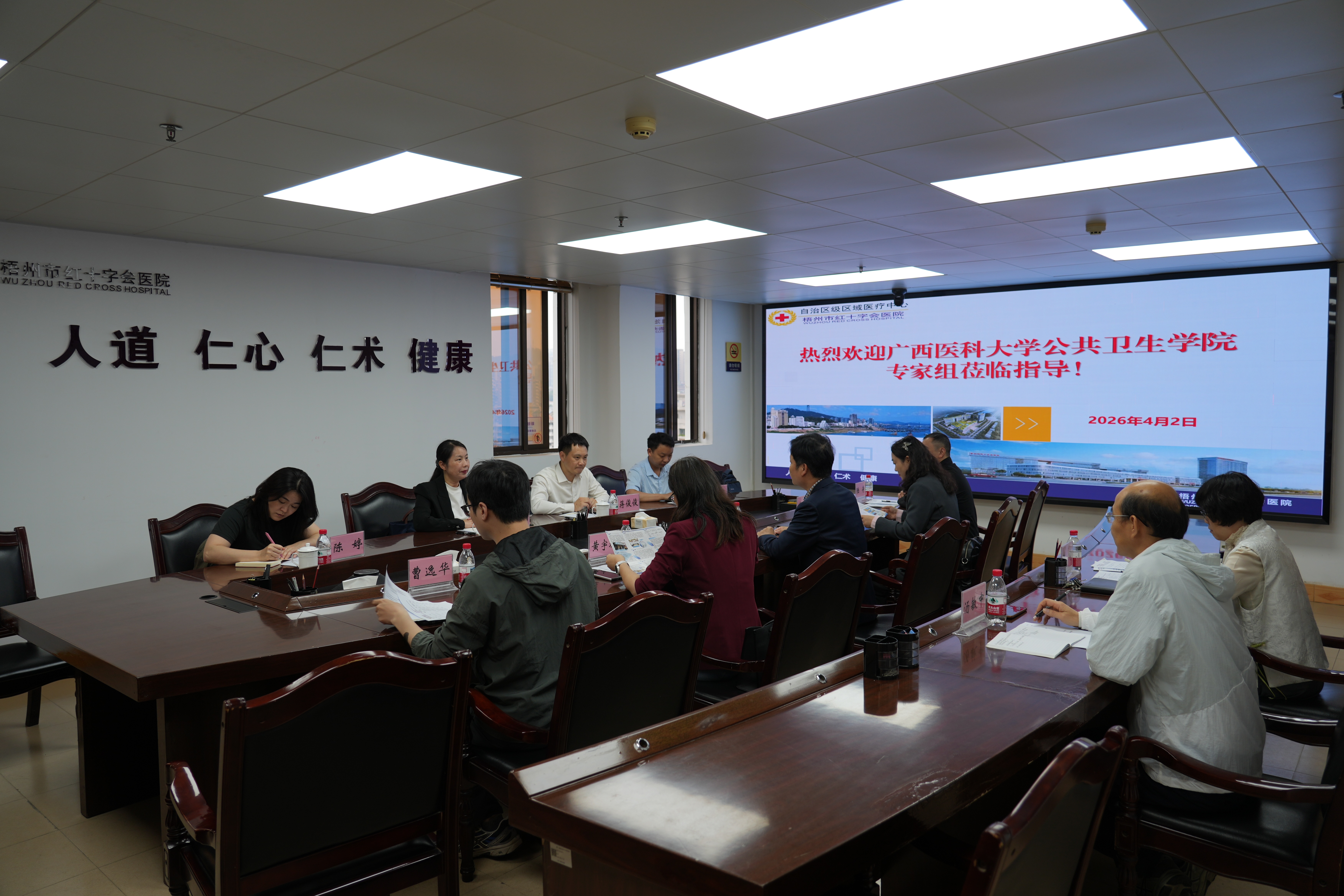 在梧州市疾病预防控制中心,苏莉详细了解单位发展概况、人才需求及公共卫生服务开展情况,座谈会上,双方围绕公共卫生人才培养模式优化、学生实习就业一体化、科研合作等议题展开深入交流;在梧州市红十字会医院,院方负责人介绍了医院发展历程、专科建设及人才队伍情况,双方重点公共卫生人才培养、MPH实践基地建设、毕业生就业岗位拓展等内容座谈,探讨强化理论教学与实践衔接、提升学生实际应用能力的有效路径,助力区域公共卫生人才储备。期间,苏莉一行走访了学生宿舍和相关实验室。